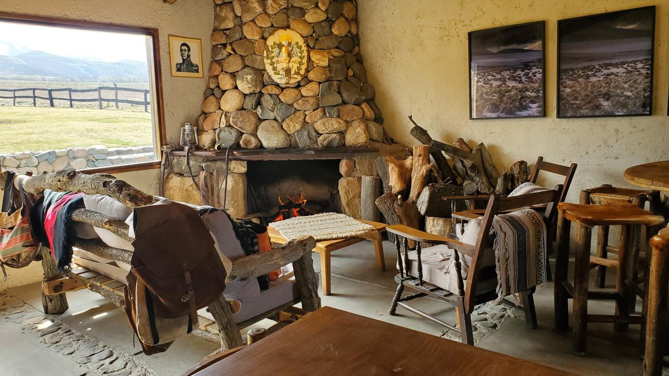 En el casco nos espera una comida típica de tres platos con vinos de la bodega Atamisque y un café junto a la enorme chimenea de piedra.